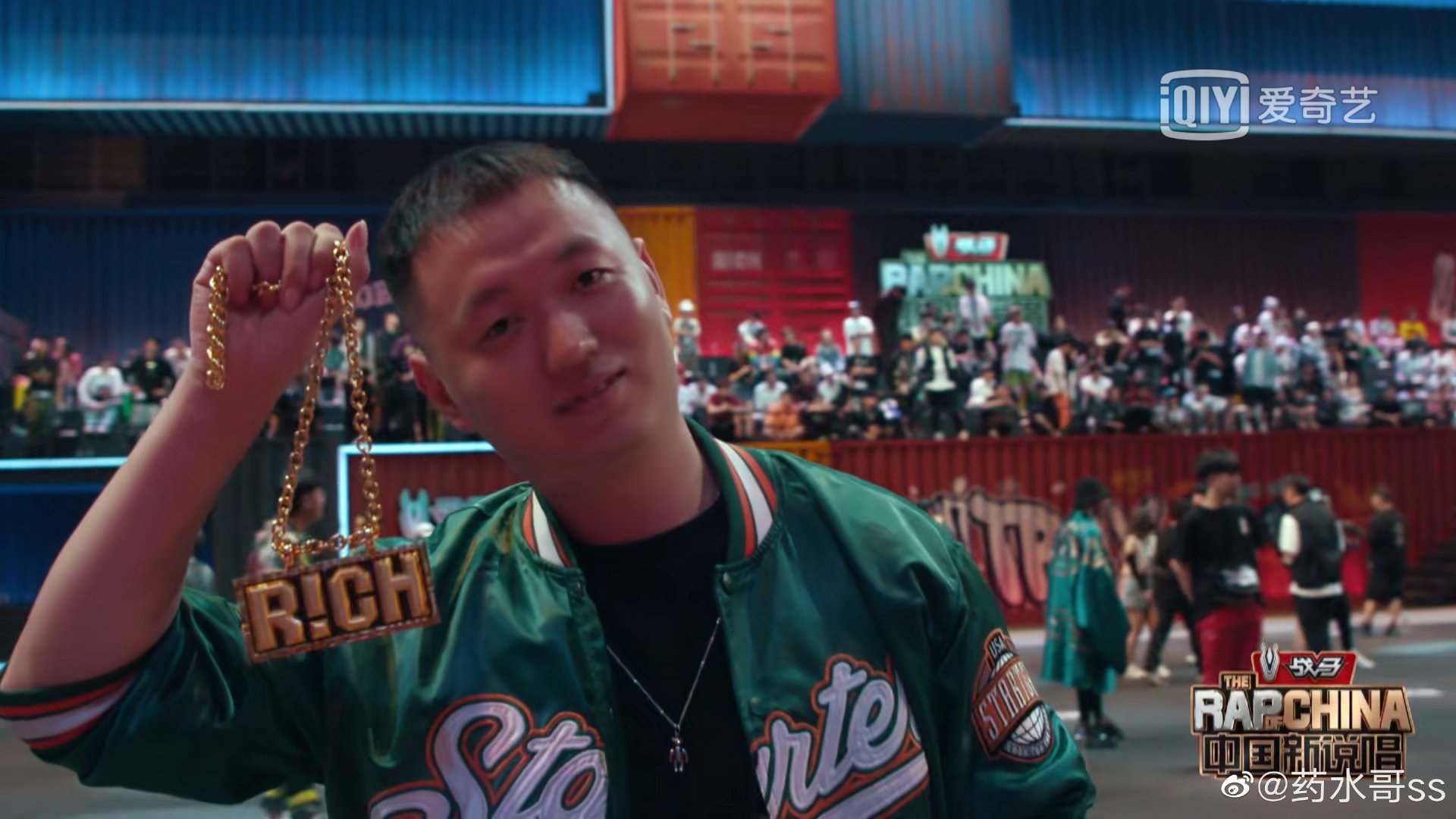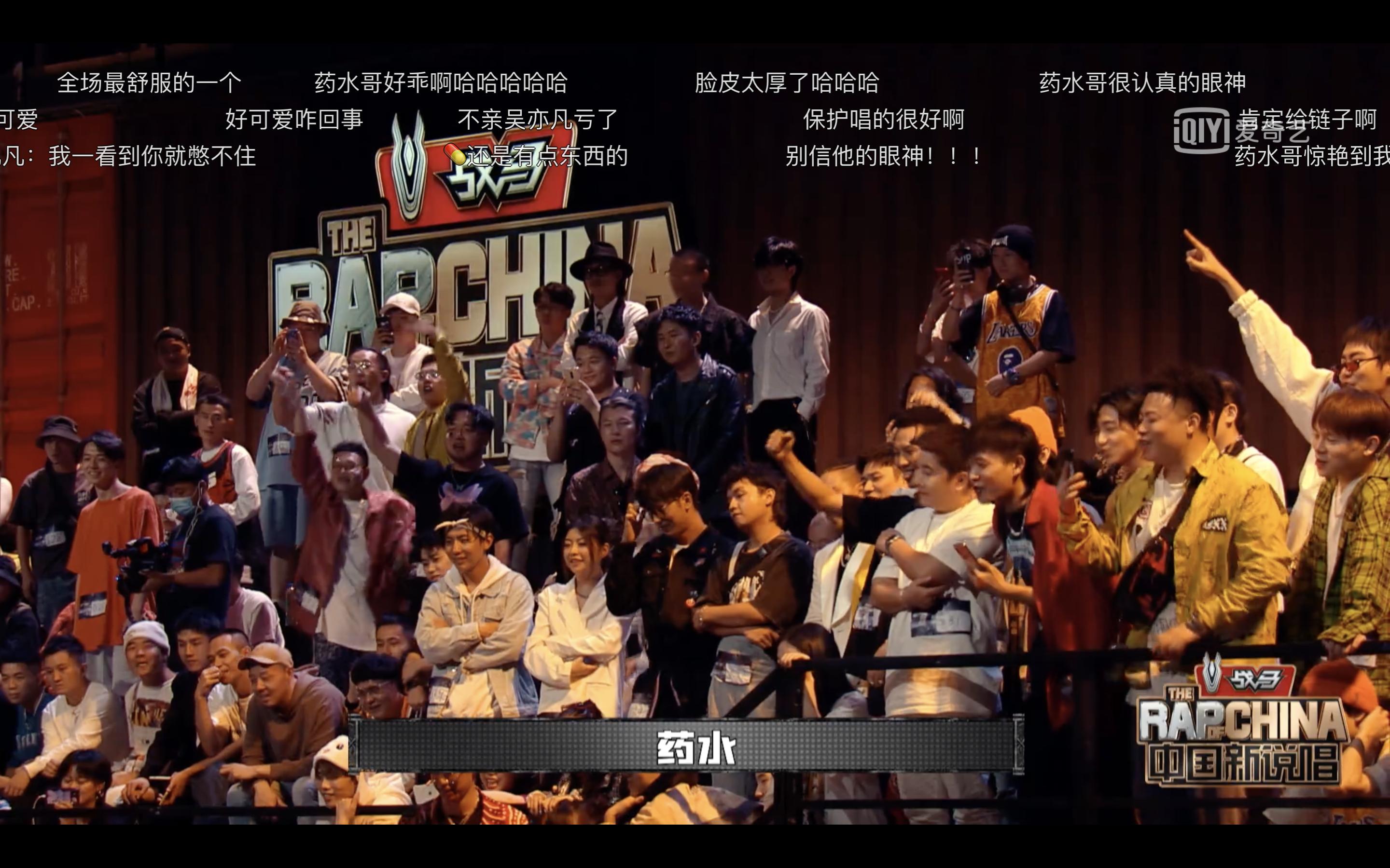 在吴亦凡听完药水哥清唱,犹豫要不要把链子给他的时候,看台上的 rapper 们集体高呼“药水!药水!”