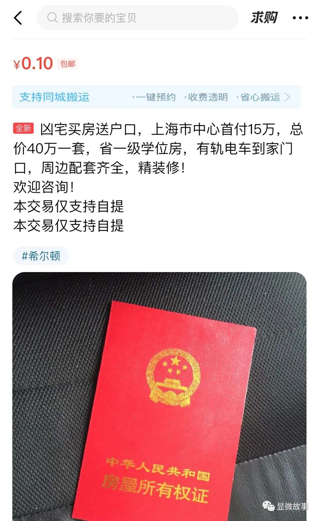 上海甚至有人打出“买凶宅送户口”的口号吸引买家