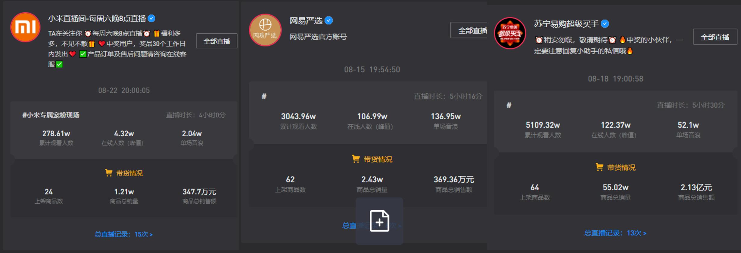 对于某些明星来说,直播带货仍然是一门需要平台扶持的事业。在抖音平台,自身带货平平的杨迪、张歆艺等明星在苏宁易购进行的多场带货直播销售额都比较可观,其中贾乃亮和关晓彤共同参与的直播卖出了2.13亿,而此前关晓彤个人在抖音直播带货的销售额仅为340万。