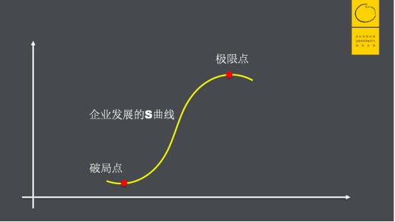 S曲线代表了企业发展的过程趋势,其中的破局点代表了企业发展过程中的生存问题,也就是企业创立之初,应该如何集中有限资源击破阈值来破茧成蝶;极限点是企业发展的问题,也就是企业发展到一定天花板时,如何突破重围,重启增长。