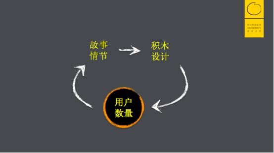 有了史诗般的故事情节,就会有更好的积木设计,进而会有更好的用户体验和用户数量。在用户数量越来越多的情况下,就会有更多人有更好的创意,反哺到我们的故事情节当中去。