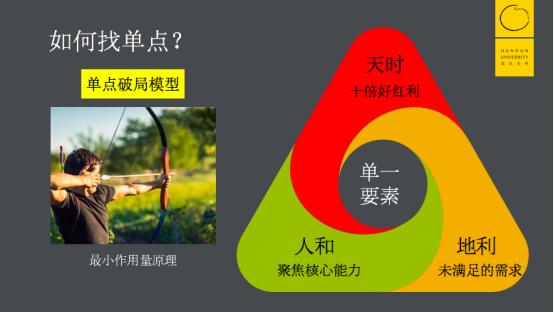 “天时”是指外部出现了10倍好的红利;“地利“是指由这个红利所带来的未被满足的需求;“人和”是指聚焦于企业的核心能力来满足这些需求。