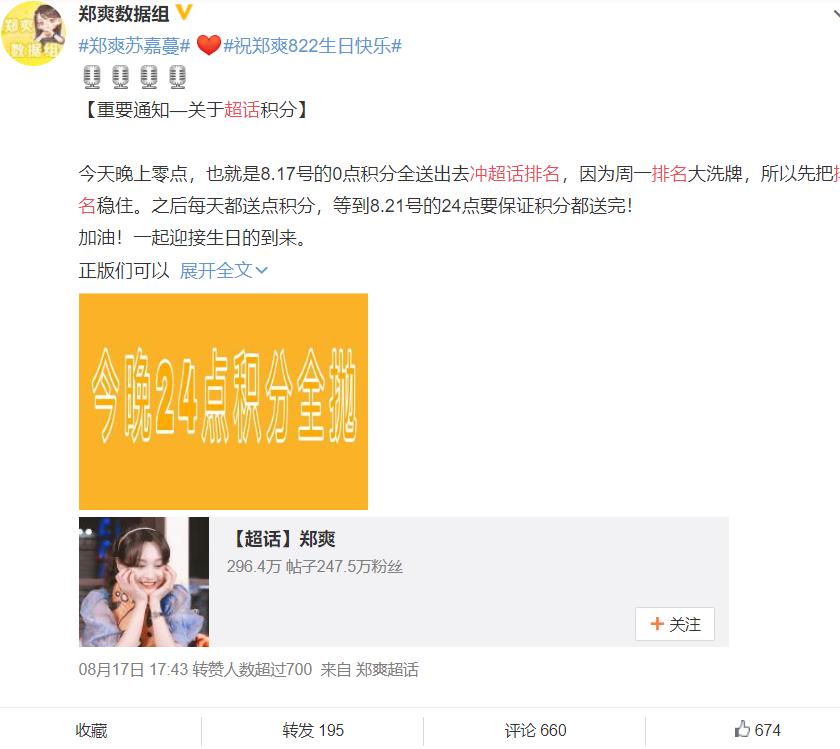 图注:郑爽粉丝号召冲超话排名