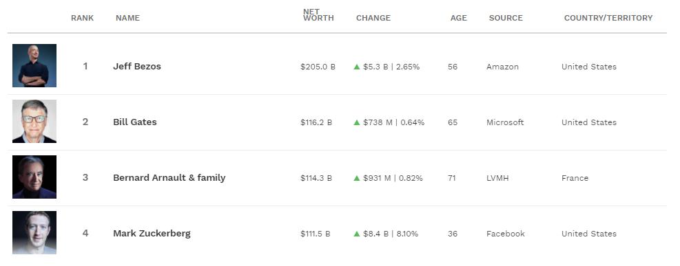 而CEO贝索斯在去年离婚分给了前妻360亿美元资产的情况下,随着亚马逊股价的水涨船高,净资产突破2000亿美元,打破福布斯排行榜40年来的最高个人财富纪录,登顶世界首富。