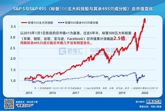 而在特斯拉还不够格“进门”的标普500,FAAMG总市值占比超过24%。因此表面上,市场经历了用时最短的深V,但真正反弹起来的,只有数量小但体量大的头部科技公司。