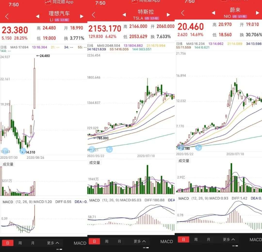 相比蔚来和理想,小鹏汽车的上市无疑踩中了天时地利。今年3月来,特斯拉涨幅超400%,总市值达4013亿美元;蔚来经历了底部反转,成为了市场瞩目的十倍股(短时间内股价上涨10倍),市值242亿美元;理想上市还未满1个月,股价涨幅103%,市值198亿美元。