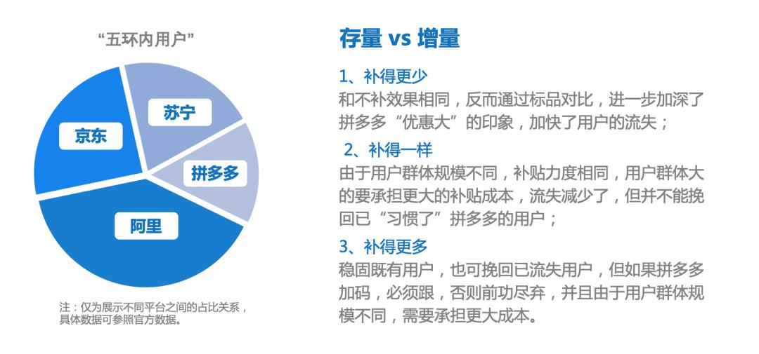 拼多多通过“百亿补贴”把阿里、京东拉入战局,迅速拉高了拼购类电商平台的获客成本,完成了对“五环内用户”和“五环外用户”的壁垒建立。