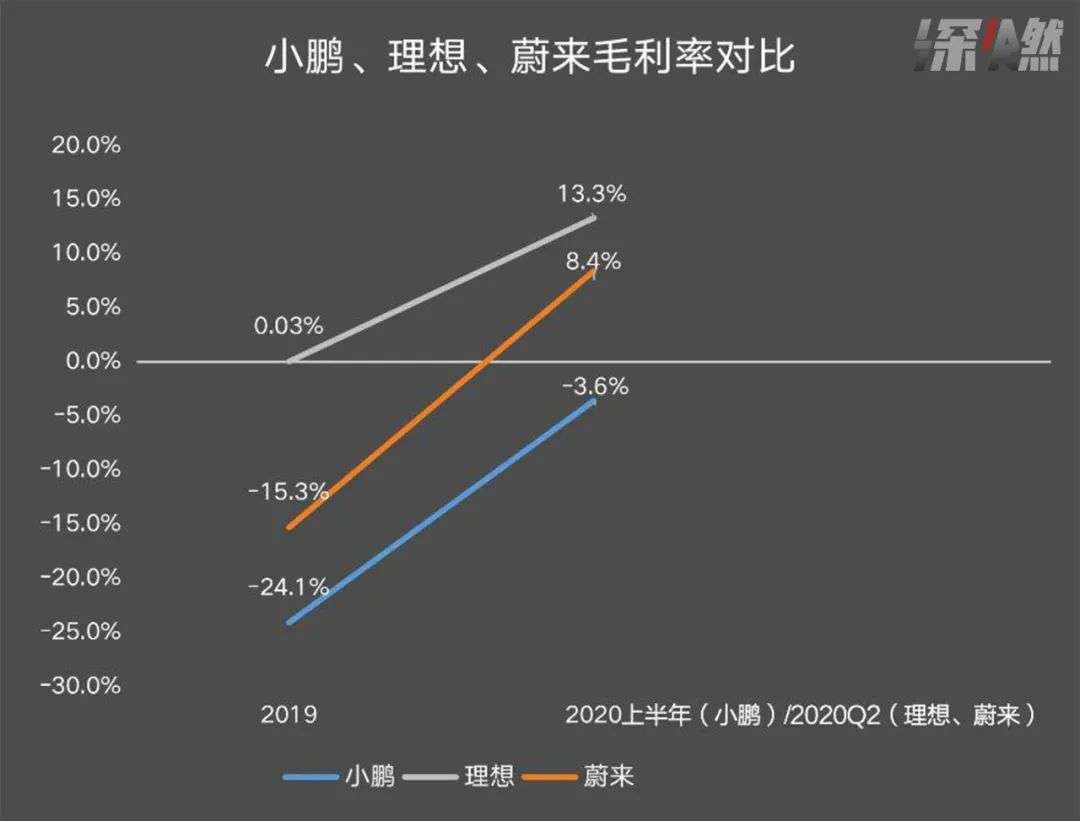 小鹏过去两年的毛利率分别是-24.3%和-24.2%,今年上半年毛利为-3611.6万元,毛利率为-3.6%,毛利亏损大幅收窄,但还处于水平线以下。