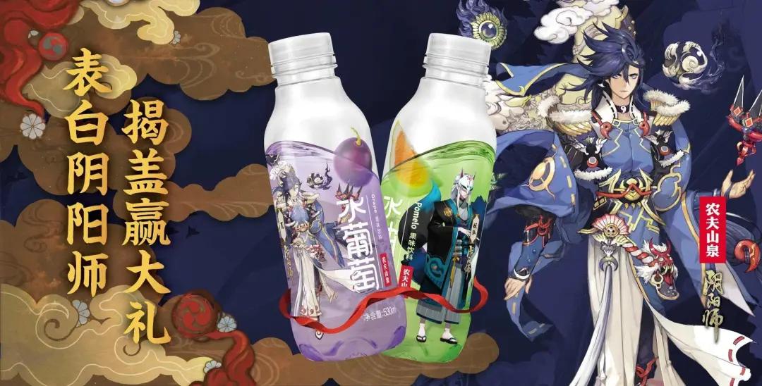 同年,农夫山泉还与当时大火的手游《阴阳师》,跨界联名,推出多种口味的定制款饮料,迎合年轻一代的喜好。