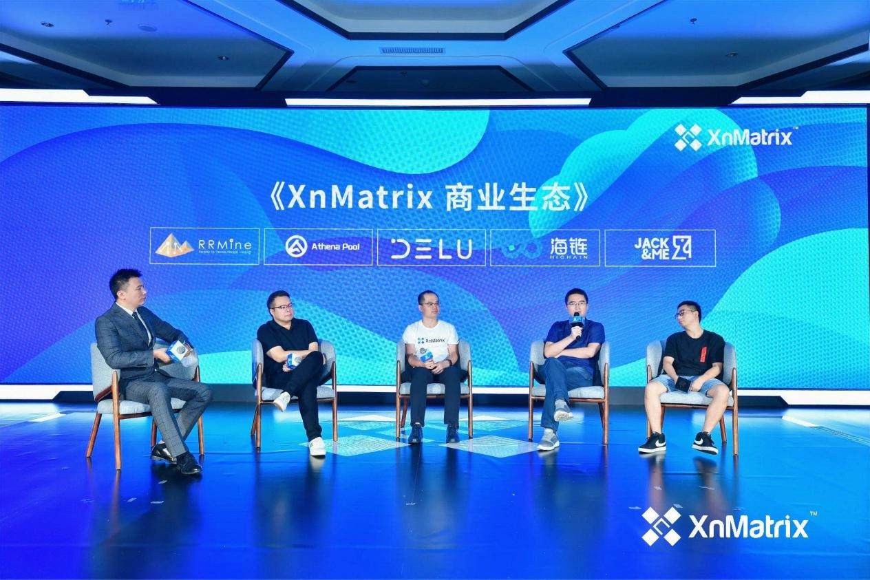 现场圆桌环节,RRMine全球CEO Steve;雅典娜矿池总负责人王磊;德鲁动力 CEO李学生 ;海链数字科技CEO于晓辉;Jack&Me AI算法产品总监丁炯,围绕《XnMatrix 商业生态》分别就自身业务模式以及XnMatrix 技术对其带来的价值赋能各抒己见、畅所欲言。
