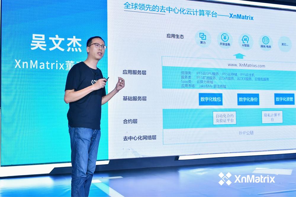 XnMatrix董事长吴文杰表示,XnMatrix的数字文明战略是以区块链系统为底层,以隐私计算和自动化合约及验证平台为核心,打造全球领先的去中心化云计算平台。其使命是建设数字文明世界的底层基础设施,帮助每个人轻松面对智能机器时代的数据隐私及人机安全挑战。XnMatrix 通过去中心化网络层、合约层、基础服务层、应用服务层4大底层架构,目前已经实现云钱包、云GPU、云储存、IPFS云主机4大标准产品,以及IPFS技术、算力商城、数字资产银行在内的行业解决方案。