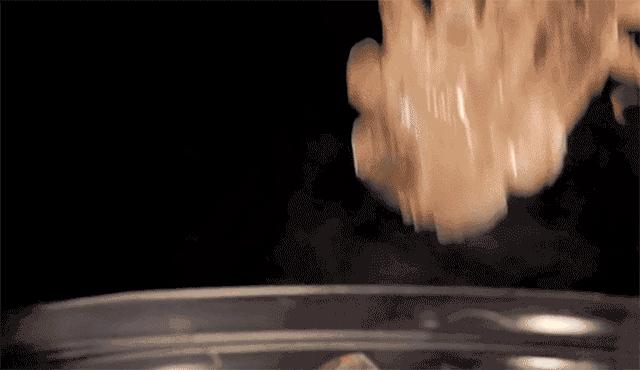 手掌纷飞中,一只只蟹完美脱壳,只留下一堆蟹粉。