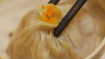 拿到包子后要小心夹,可别给捅破了,先给它开个小窗,咬开一个小口,先慢慢吸包子里的汤汁。