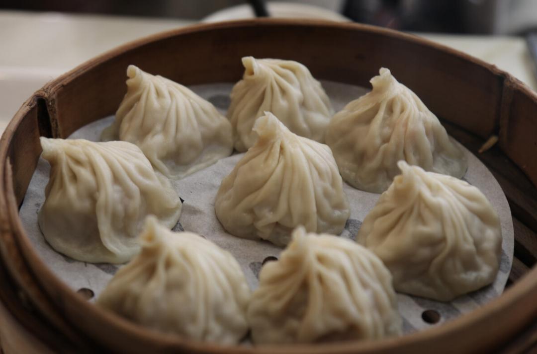 裹着汤汁的汤包皮也是讲究,皮太厚了口感差,皮太薄了出锅容易漏,又怕被汤泡久了面皮口感变差。