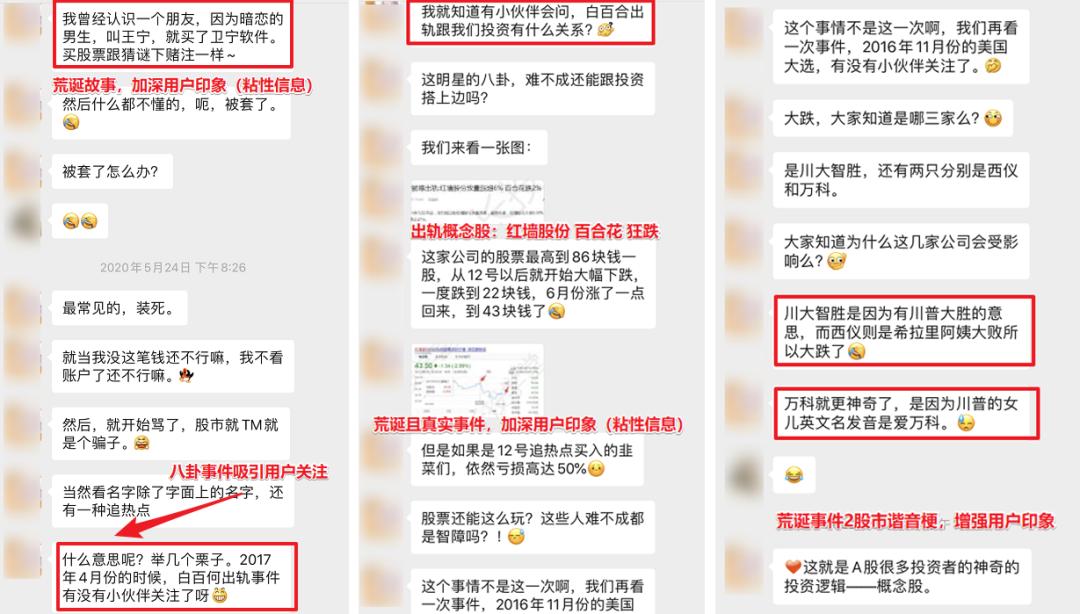 比如训练营的班班是通过讲述股市中一些荒诞且真实事件,加深用户的印象。