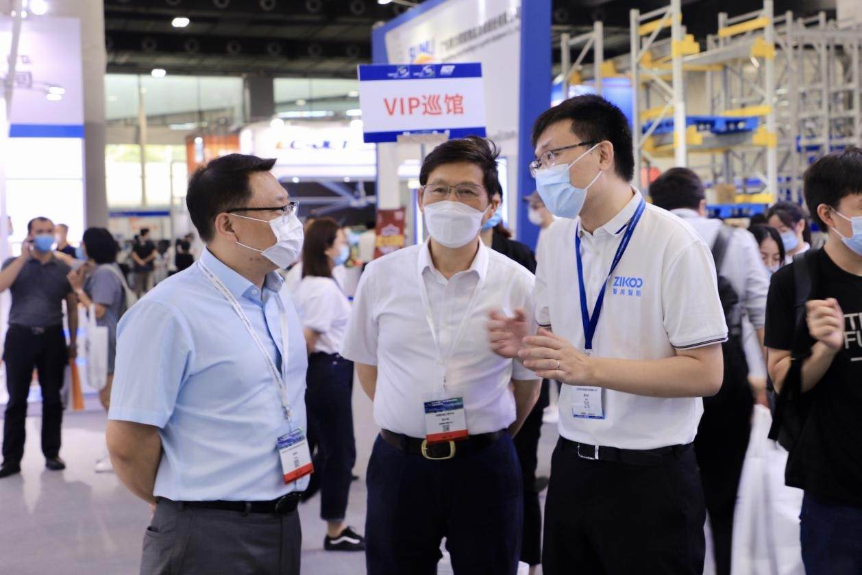 中国机械工程学会副理事长兼秘书长陆大明、中国物流与采购联合会物流装备专业委员会秘书长左新宇在智库智能总裁蔡传玉的陪同下参观了展位。在了解智库智能业务体系后,陆大明与左新宇肯定了智库智能独立自研智能仓库产品体系的创新价值。智库智能是中物联常务理事单位,在目前物流仓储装备行业共克时艰的大背景下,两位行业领导也对智库智能题注了“积极应变、主动求变,不断夯实基础,于变局中开新局,朝着高质量、高科技企业进一步发展开拓”的鼓励和建议。