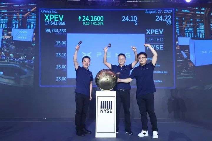 2020年8月,小鹏汽车在纽交所上市,股票代码“XPEV”,发行价15美元/ADS。