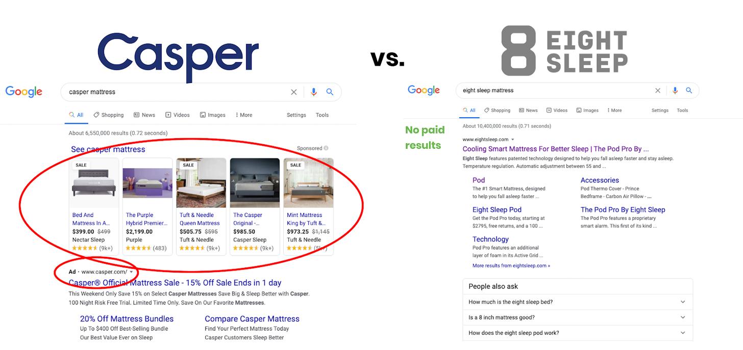 Google “Casper”的搜索结果 vs “Eight Sleep”的搜索结果