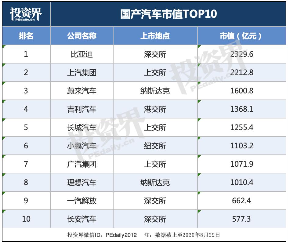 这中国汽车史上一场史无前例的洗牌潮。至此,中国市值十大国产汽车格局发生了翻天覆地的变化。