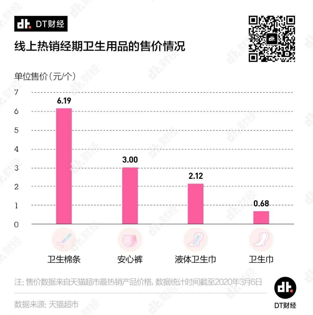 我们统计了电商平台不同经期卫生用品中最热销产品的单位价格,结果显示卫生棉条的价格是普通卫生巾的9倍多,液体卫生巾的近3倍以及安心裤的2倍多。