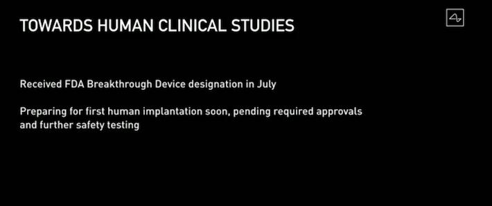 不少媒体在报道这场发布会时,把 Neuralink 获批人体实验放在了标题,但其实它们并没有获得美国 FDA 的正式批准。Neuralink 在发布会上确实宣布了一项 FDA 批准,但只是获得“突破性设备称号”,而人体植入实验“尚待所需的批准和进一步安全测试”。