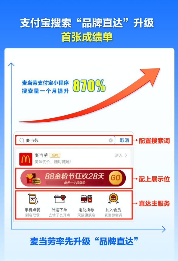 支付宝搜索“品牌直达”升级,麦当劳小程序搜索量暴增870%