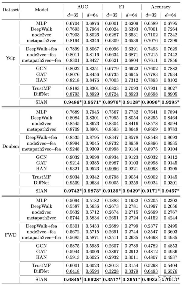 在两个公开数据集(Yelp和豆瓣)以及微信“看一看”数据(FWD),研究团队进行了评估和分析。