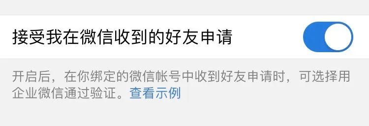 打开企业微信App,依次点击【我-设置-隐私】,开启「接受我在微信收到的好友申请」即可。