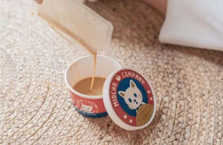 在人类世界,奶茶是一款深受年轻人喜爱的饮品,但人类的配方并不能直接搬运给猫和狗,参照人类奶茶的形态,黄斓曦和团队用鲜肉和羊奶做出了猫奶茶“喵茶”,每杯50毫升,定价15元——比奶茶品牌一点点的大杯波霸奶茶还贵一点。