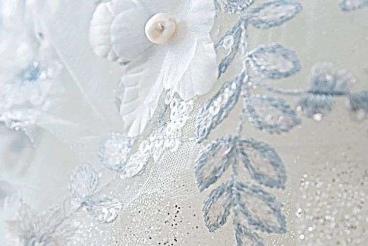▲ “海的女儿”婚纱珍珠遍布全衣,花朵点缀裙身。