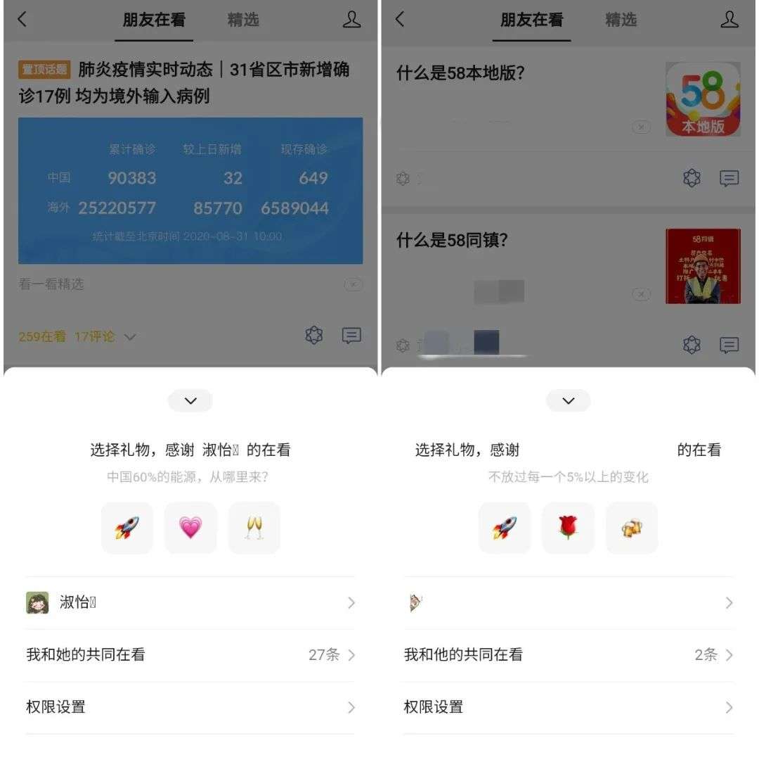 在送礼页面,可以看到你跟这位好友的共同在看以及权限设置,如果共同在看数越多,那就证明你们很有可能是同事。