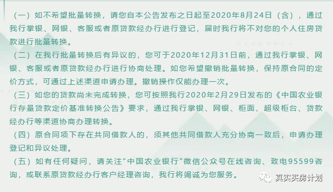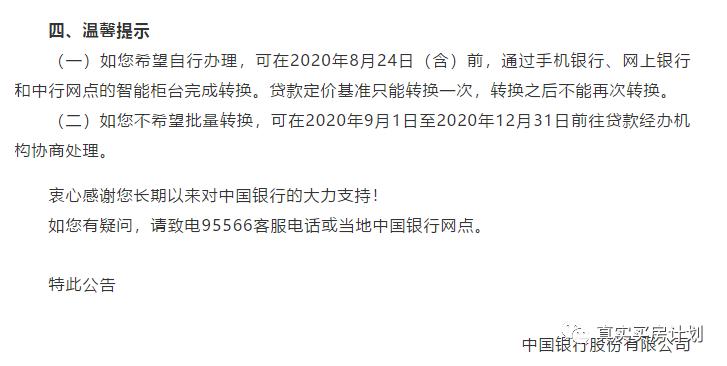 批量转换完成后,如您希望保持原合同的定价方式,您可在2020年9月1日至2020年12月31日通过手机银行自助转回,或到银行任一网点智慧柜员机(STM)、贷款经办机构处理。原合同有多个借款人的,一人办理即可,办理时间截止到2020年12月31日。