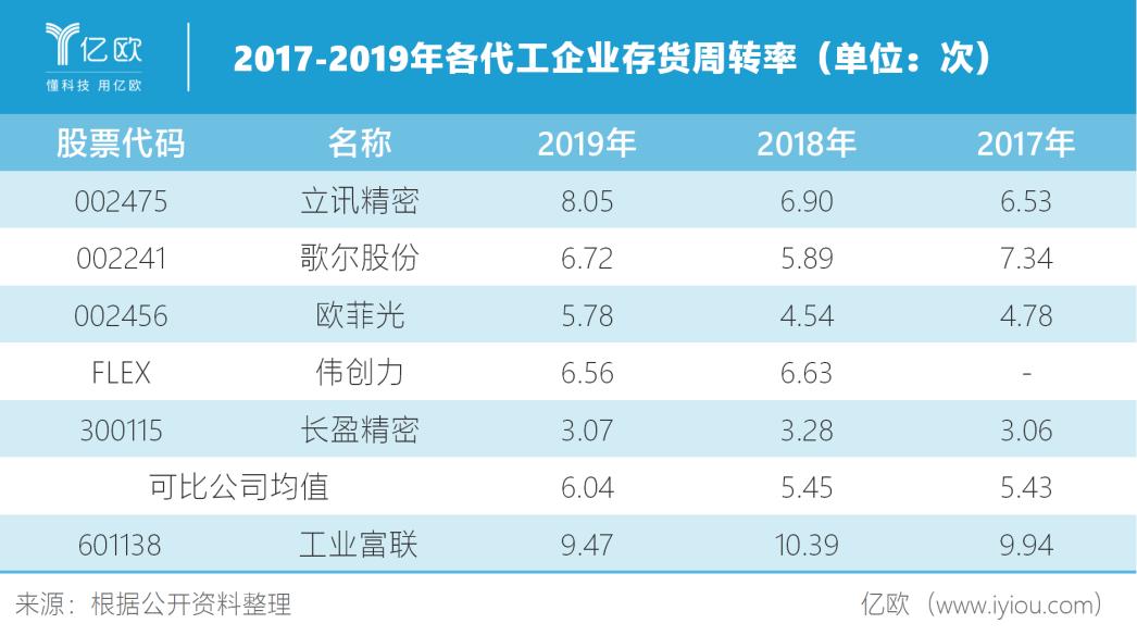 从财务数据来看,富士康(以工业富联为代表)在反应企业生产经营各环节中存货运营效率的存货周转率指标上也明显高于可比同行,包括立讯精密。