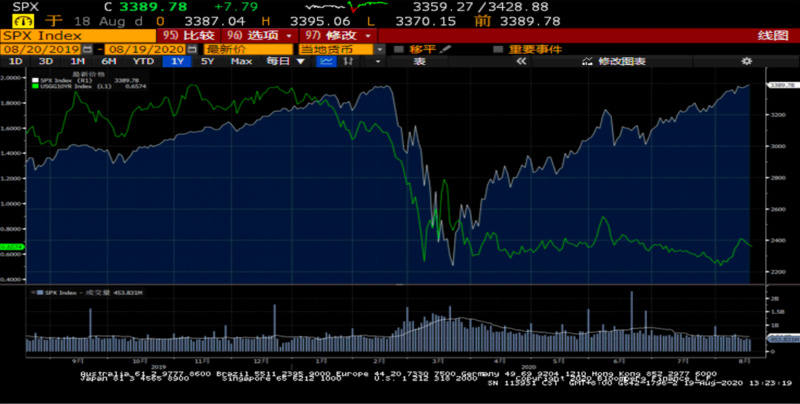 我们可以看到下边彭博的一个数据,绿色线是国债收益率,白色线是标普500。“312“之后我们注意到国债没有变化。那么大家的钱去哪儿了呢?