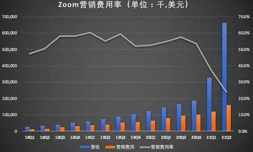 Zoom的运营费用主要有研发支出、销售和营销支出、一般及行政支出构成。其中,销售和营销支出为1.592亿美元,较上年同期的7965万美元,增长99.8%,较上一季度的1.216亿美元,增长30.9%,营收占比24%。