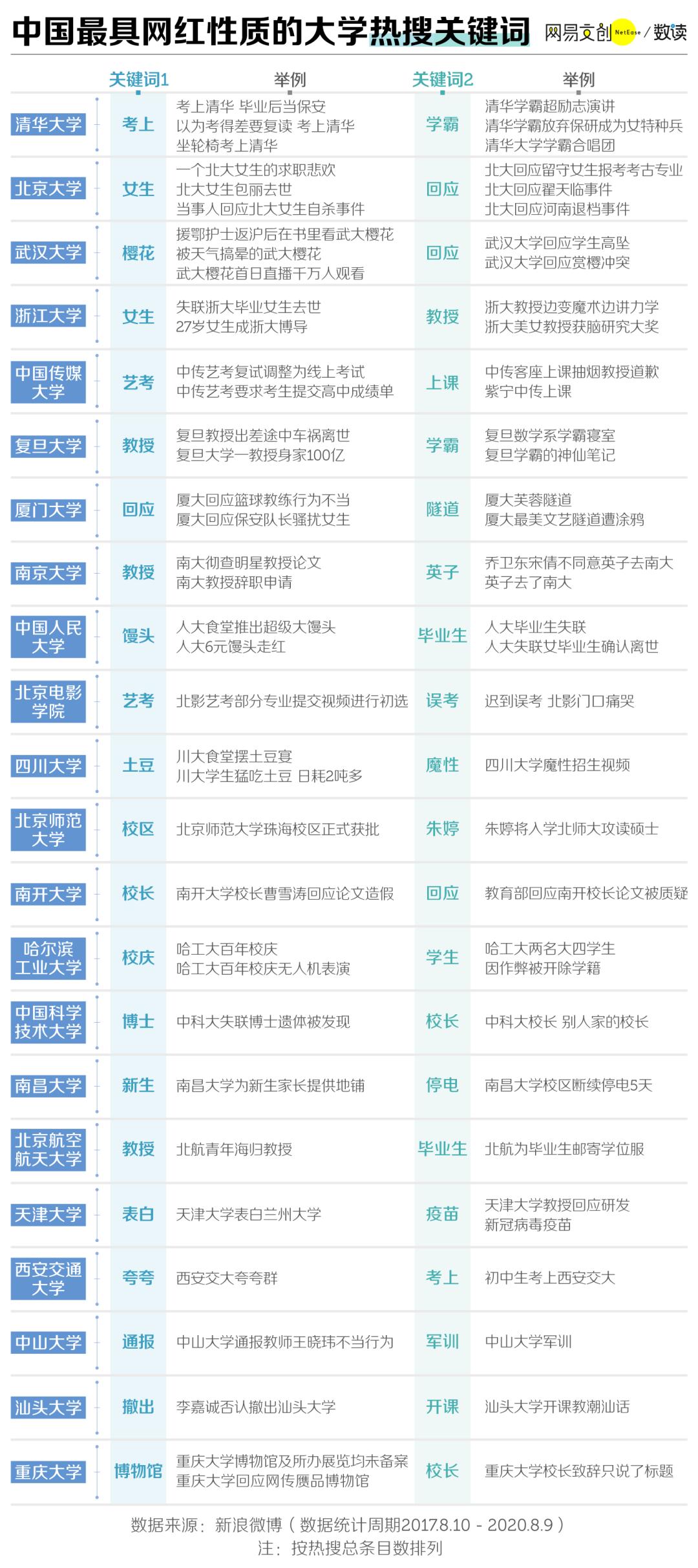 整体上来说,中国最具网红性质的这 22 所大学,上热搜还是以正面形象居多。