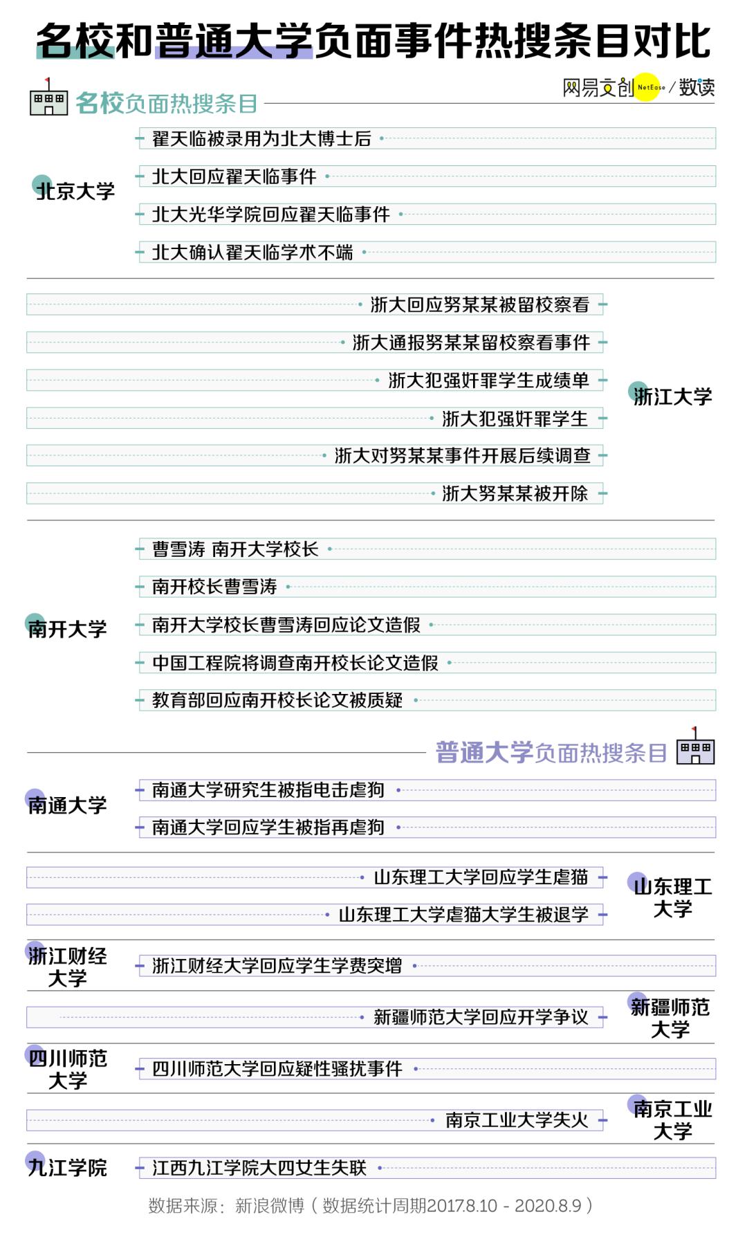 比如翟天临被录取为北大博士后,浙江大学努某某强奸和南开大学校长论文事件,从事件发生到处理、回应都完整的呈现在热搜上。