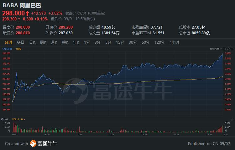 阿里巴巴涨近4%,收盘市值突破8000亿美元