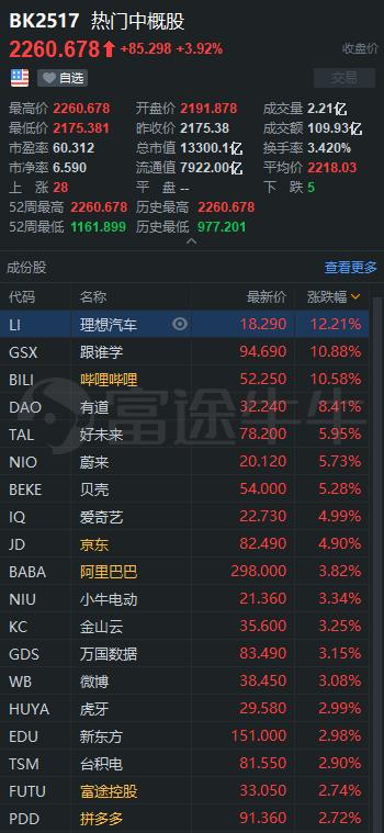 热门中概股具体表现如下: