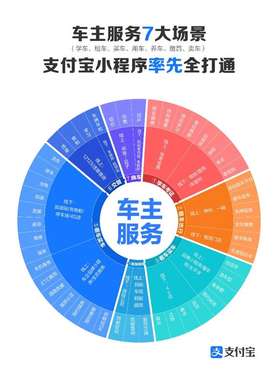 据介绍,支付宝数字生活平台上目前有超百种车主服务,每天活跃数亿车主人群。支付宝也率先在手机端实现了数字化全链路生态,包括学车考证、看车买车、金融保险、用车养车、交管罚缴、卖车换车等全流程的7大场景。用户在支付宝搜索“车主服务” 便可享受各项服务。