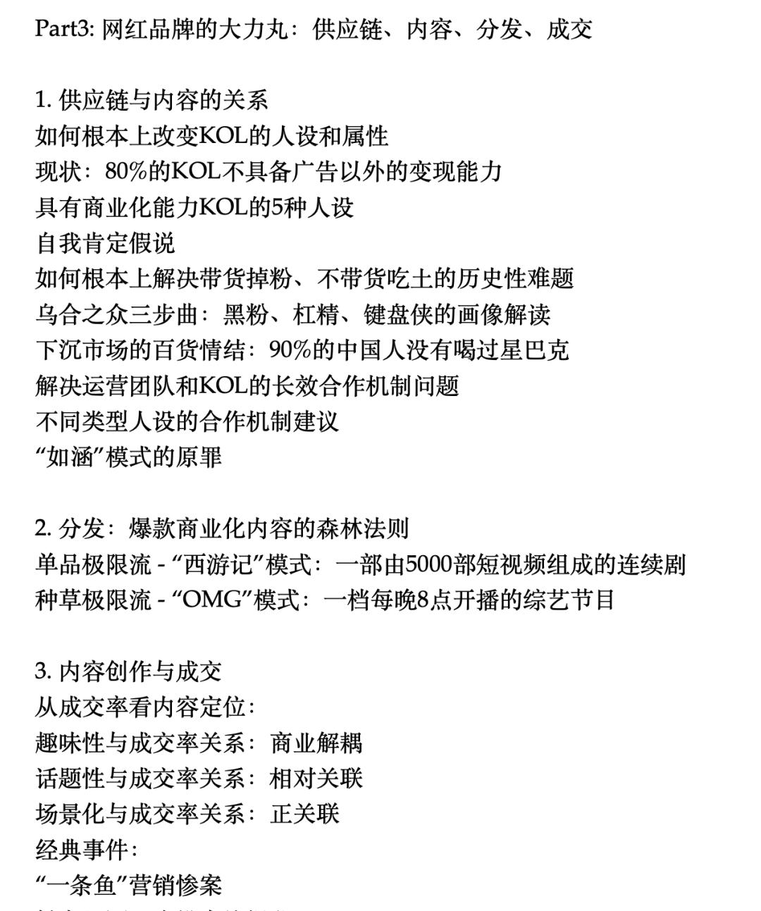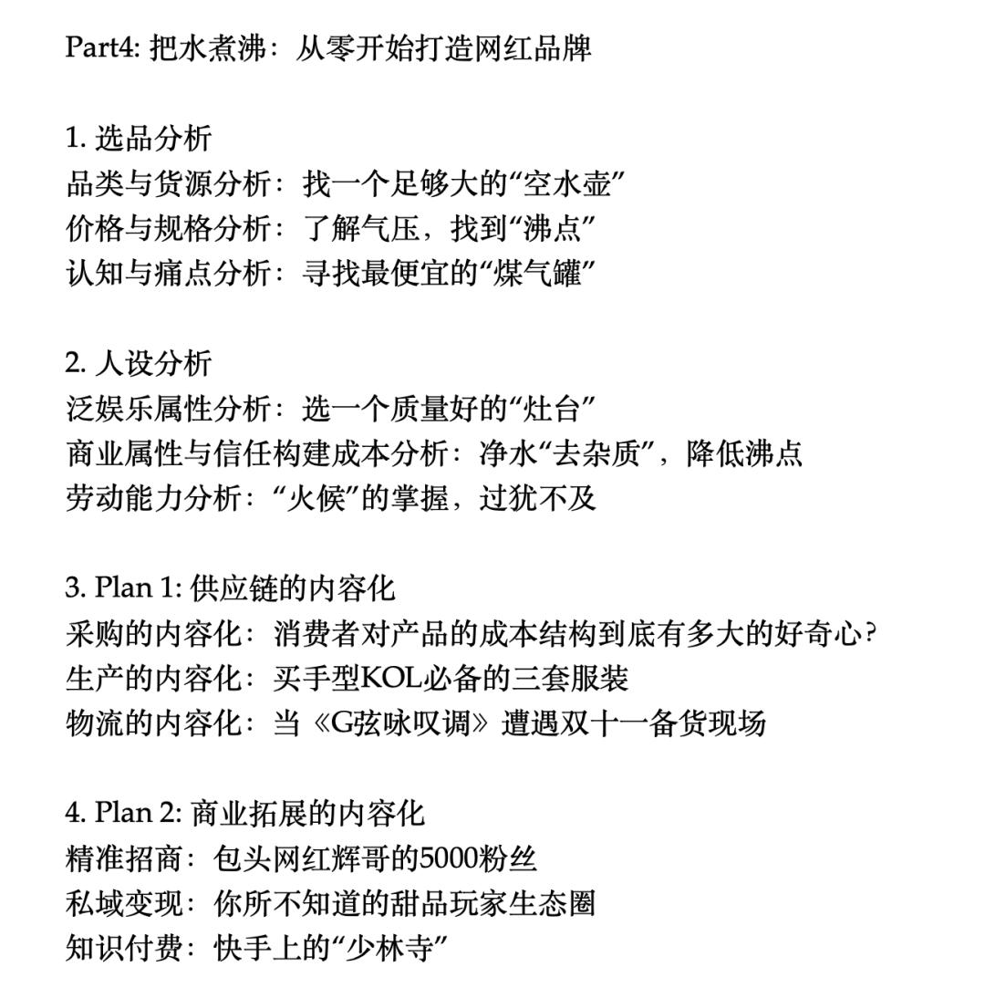 然后成渠道品牌,这叫做食品类网红的得到,把自己的方法论赋能给其他品类,做矩阵规模。