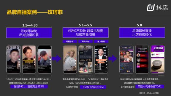 除了达人直播,在整个品牌直播的案例里面,其实也有非常不错的品牌尝试过自己在抖音小店的平台上进行直播。