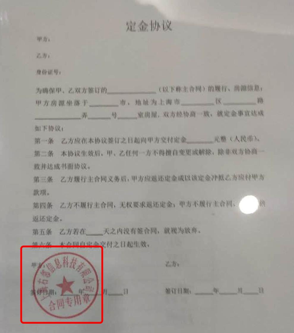 更令房东和租客感到吊诡的是,若扑总部提供的一份《定金协议》显示,甲方是上海右邻信息科技有限公司,也就是右邻直租,主要代理运营公寓,托管房东房客双向押金,减少爆雷风险。