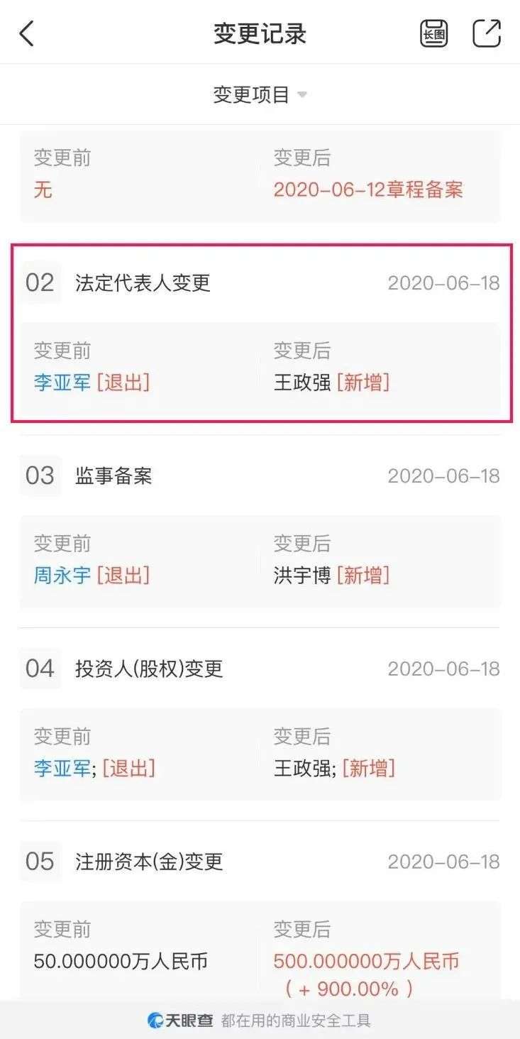 而就在两个半月以前,若扑高管悄然变更。天眼查显示,2020年6月18日,若扑法人和投资人从李亚军变更为王政强,监事从周永宇变更为洪宇博。