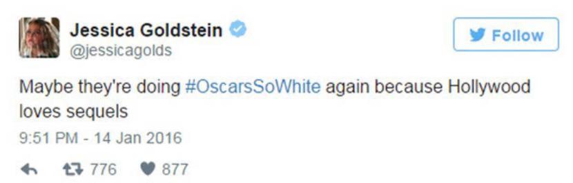 ▲推特截图:好莱坞喜欢拍续集,所以今年又搞了一遍#奥斯卡太白