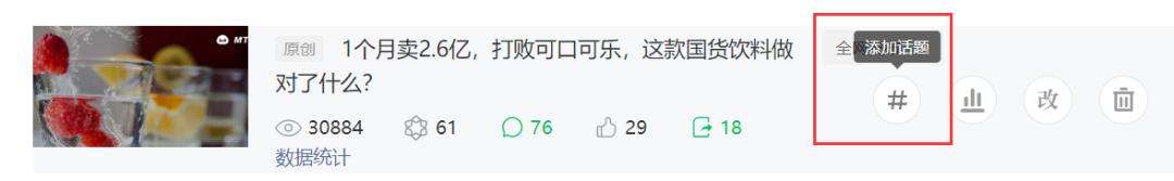 如今升级为话题标签,这一优势依然存在。所以对于粉丝少阅读量低的小号来说,热门的话题标签能建则建,这样其实就是在蹭大号的流量,你的文章才有机会被更多人看到。