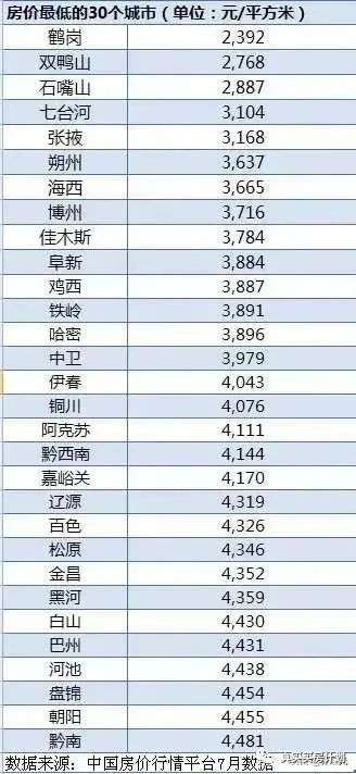 房价最低的30个城市