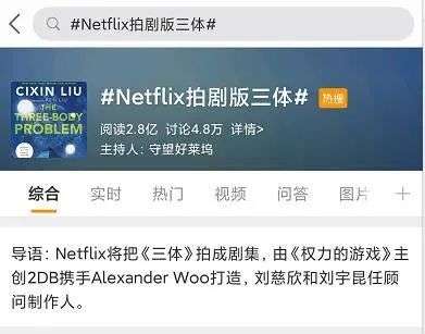 日前,Netflix(以下简称奈飞)忽然官宣将拍《三体》美剧,迅速引发广泛关注。甚至有网友激动地表示,“终于能在有生之年,看到一部上映的《三体》”。