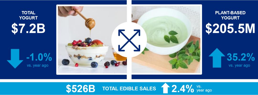 总酸奶销售额较去年减少1%时,植物基酸奶增长35.2%,图片来源:FMI 零售报告