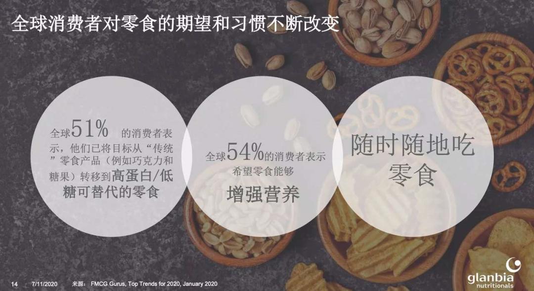 根据英敏特的数据(What's next snacking in China 2020)显示,有24%的中国消费者在购买零食时,健康成为第一考虑的重要要素。这也符合全球大趋势,全球 51%的消费者已从「传统零食」转到低糖的替代选项。[8]